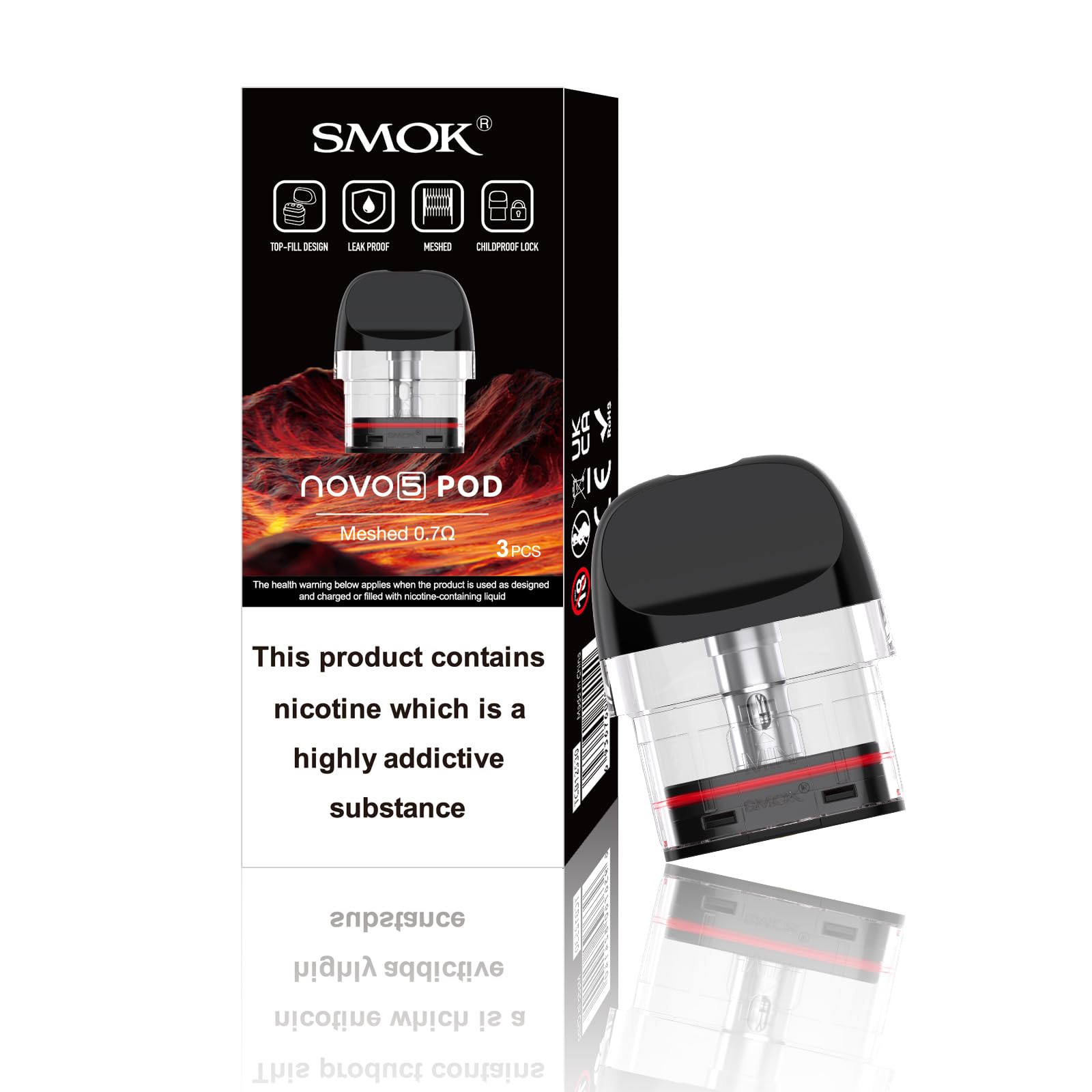 The Smok Novo 5 replacement pods will hold up to 2ml of e-liquid and are designed for use with the Smok Novo 5 Pods . Designed for MTL (Mouth To Lung) vaping, these pods contain built-in Smok LP1 coils. Each clear pod features a clear plastic design, so you can keep an eye on how much e-liquid is left inside.